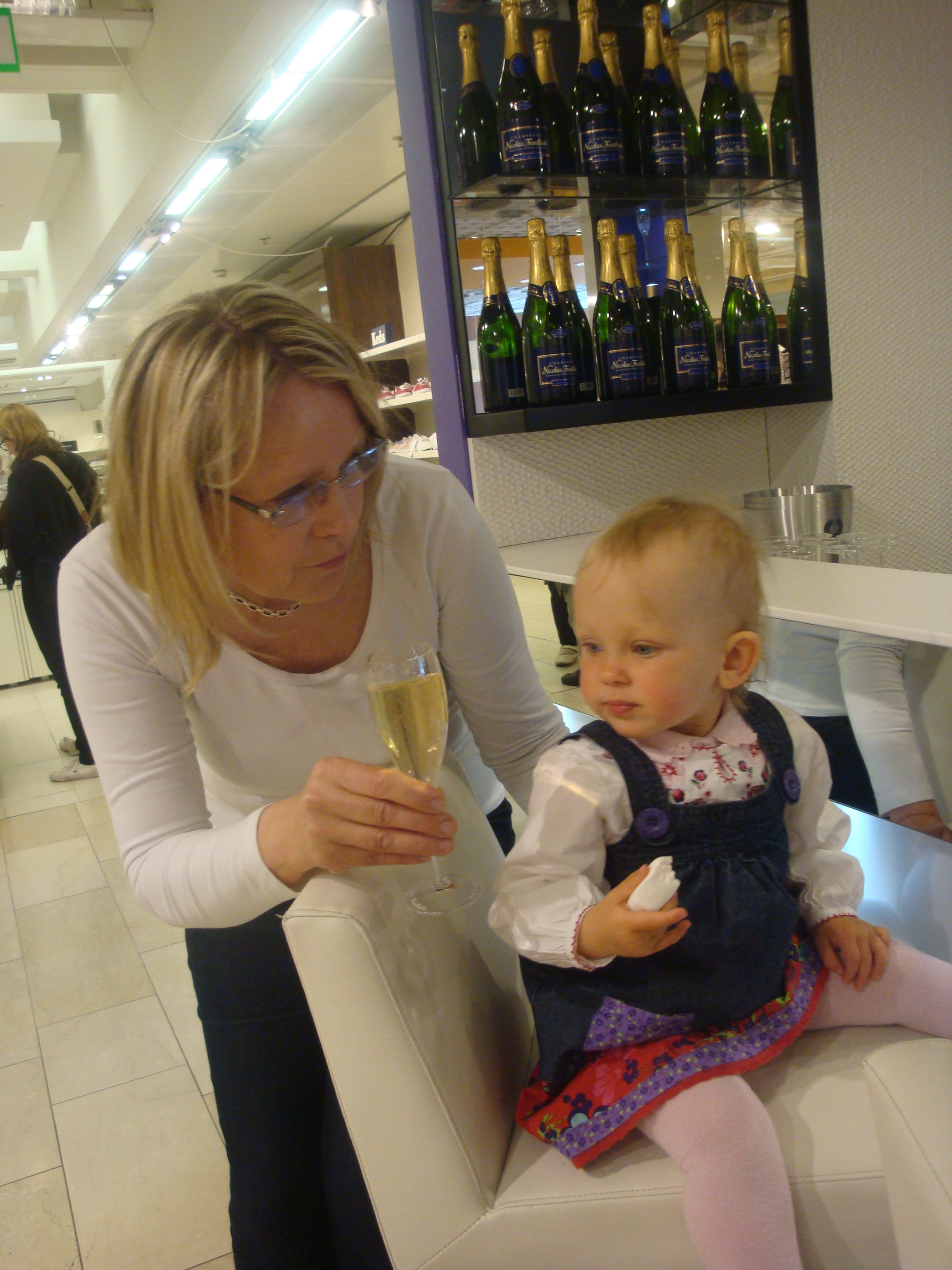 Idag fyllde Frejas mormor år. Firar med Champagne på Stockmann.