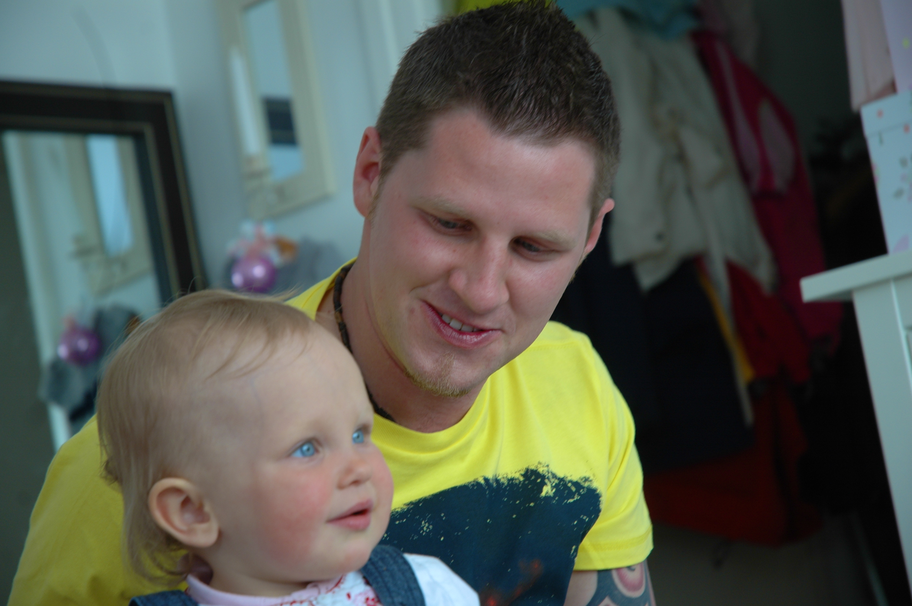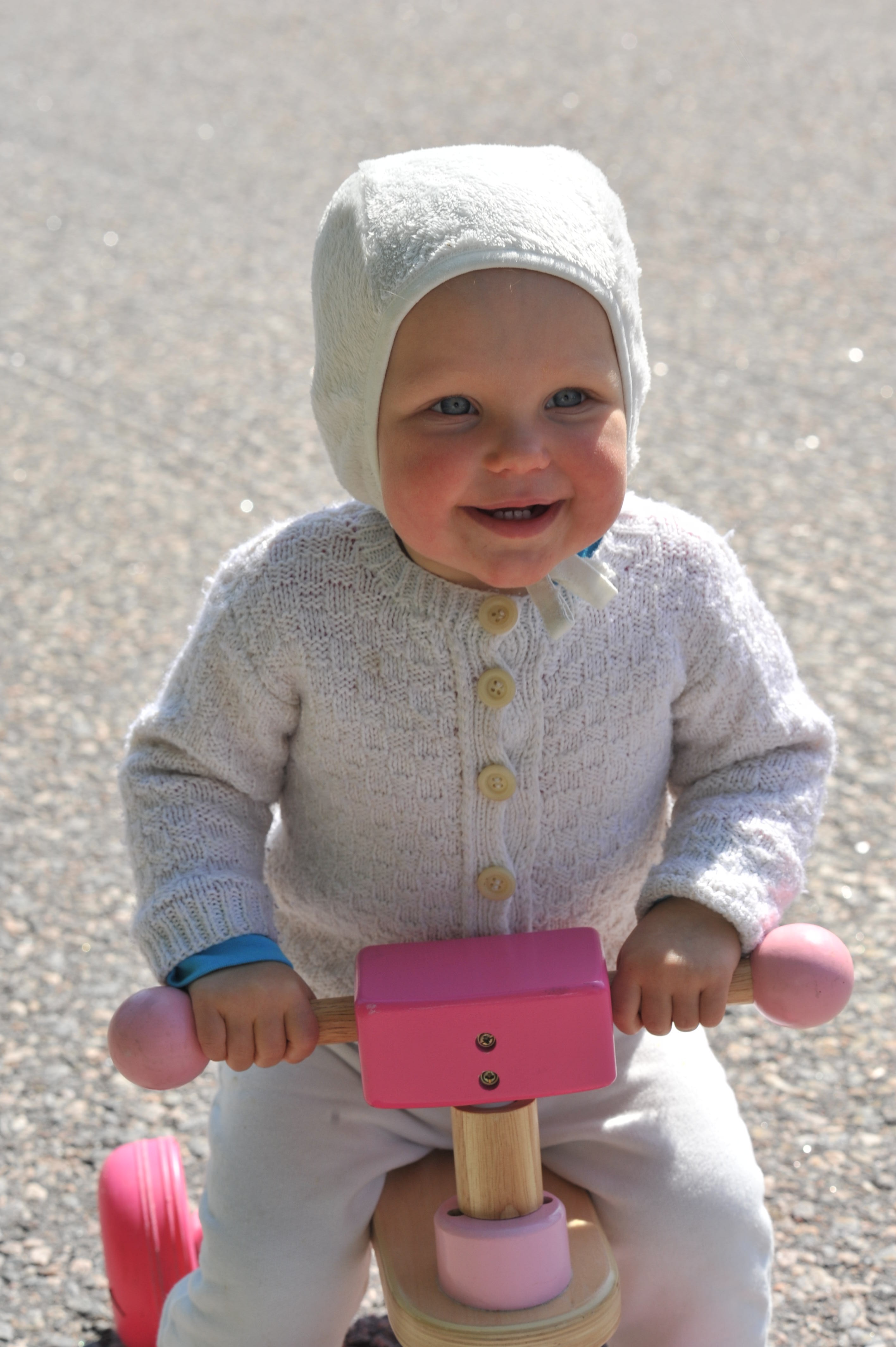 Freja fick ”smaka” på en karamell. Den smakade nog säkert gott då hon åt upp den hela.