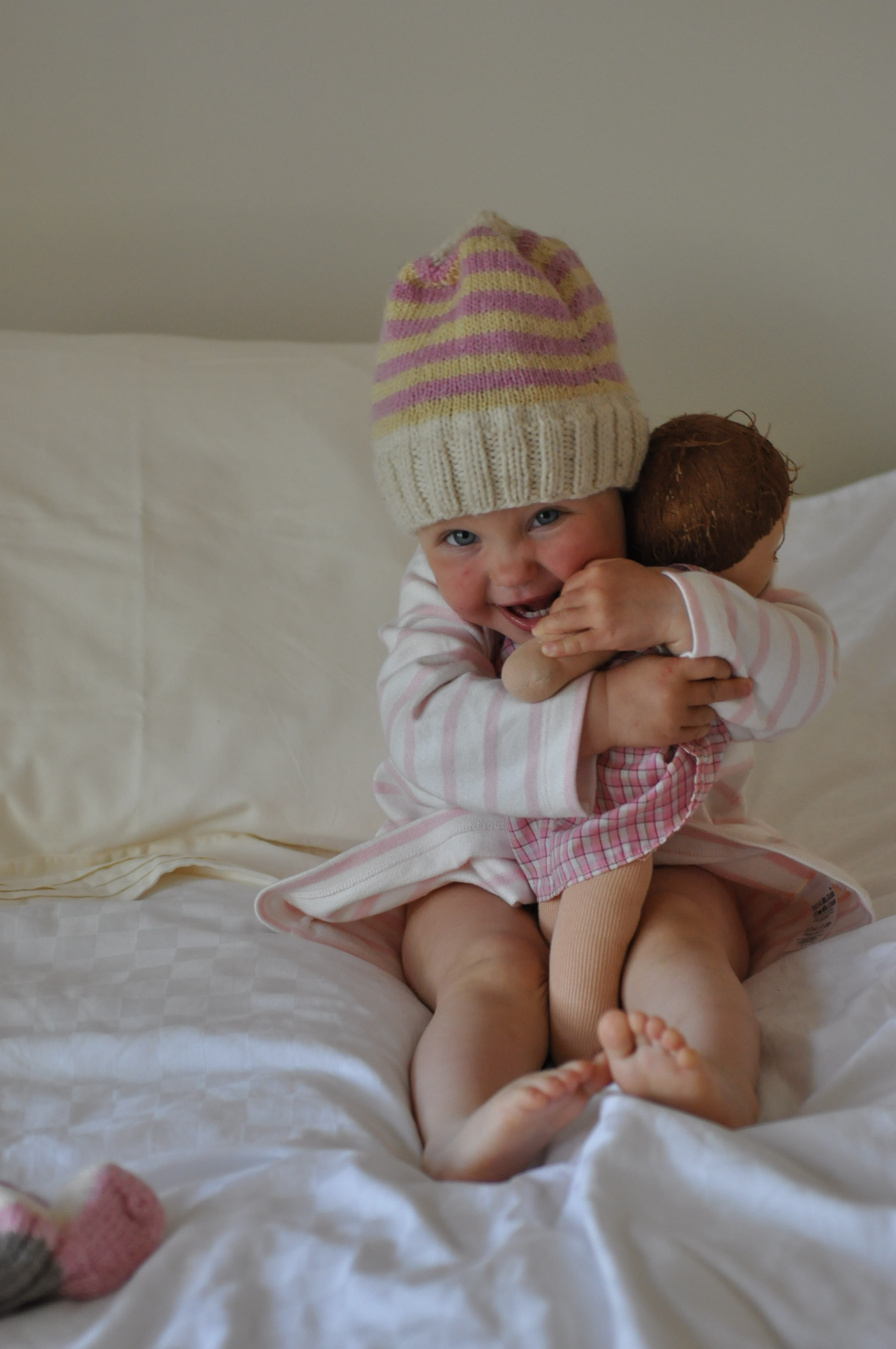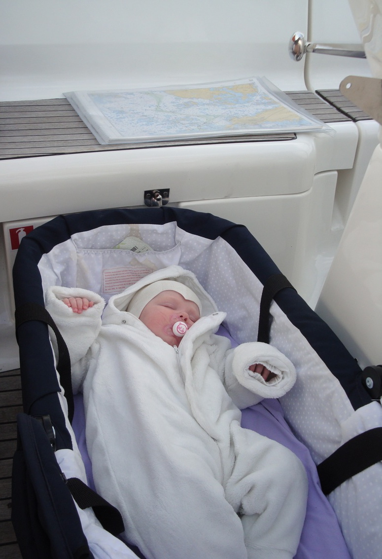Freja trivs i famnen, men tyckte att det inte behövs en bärsjal.