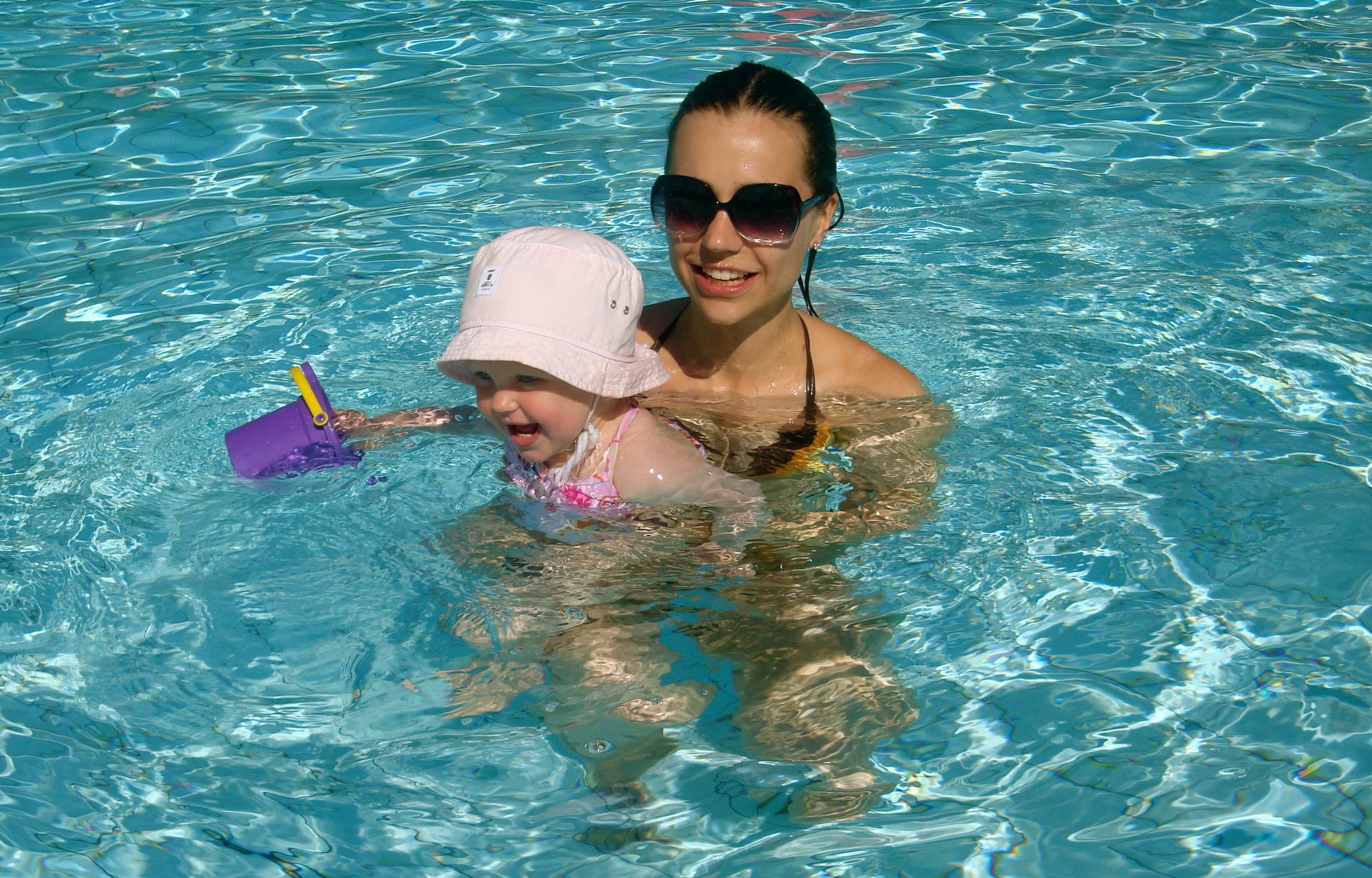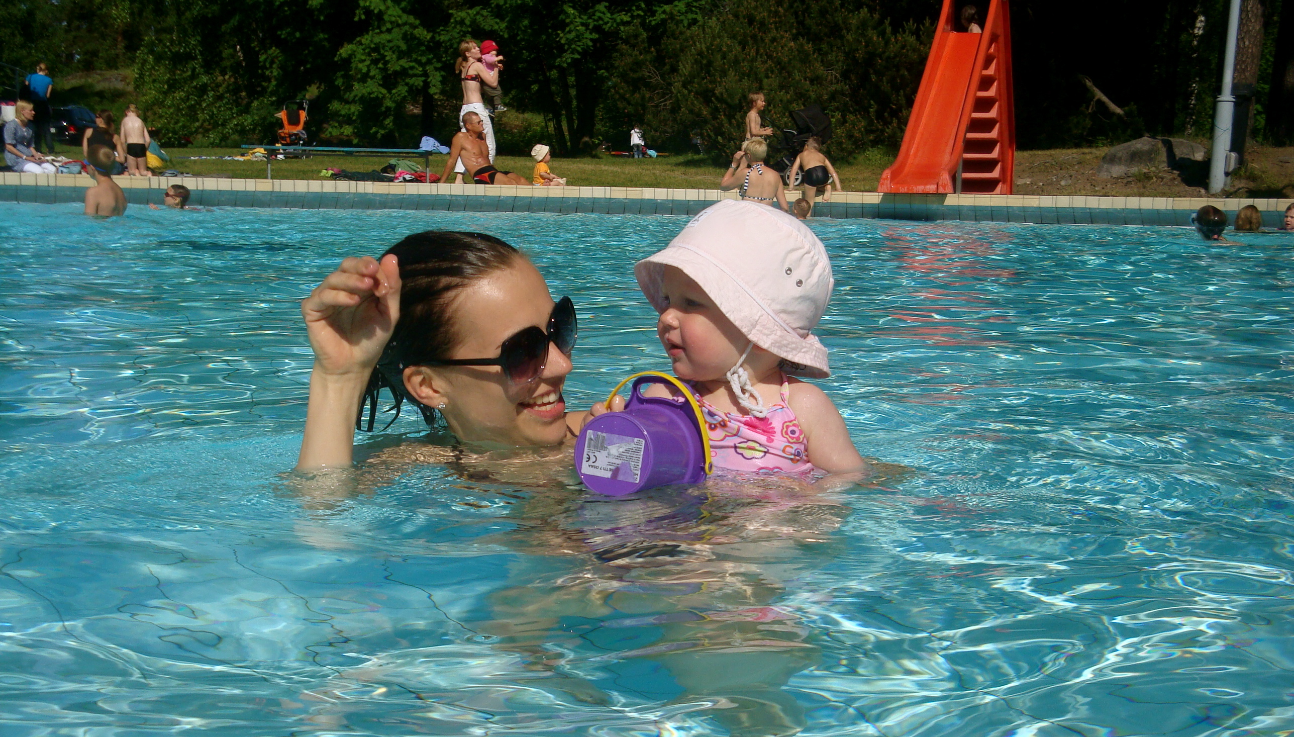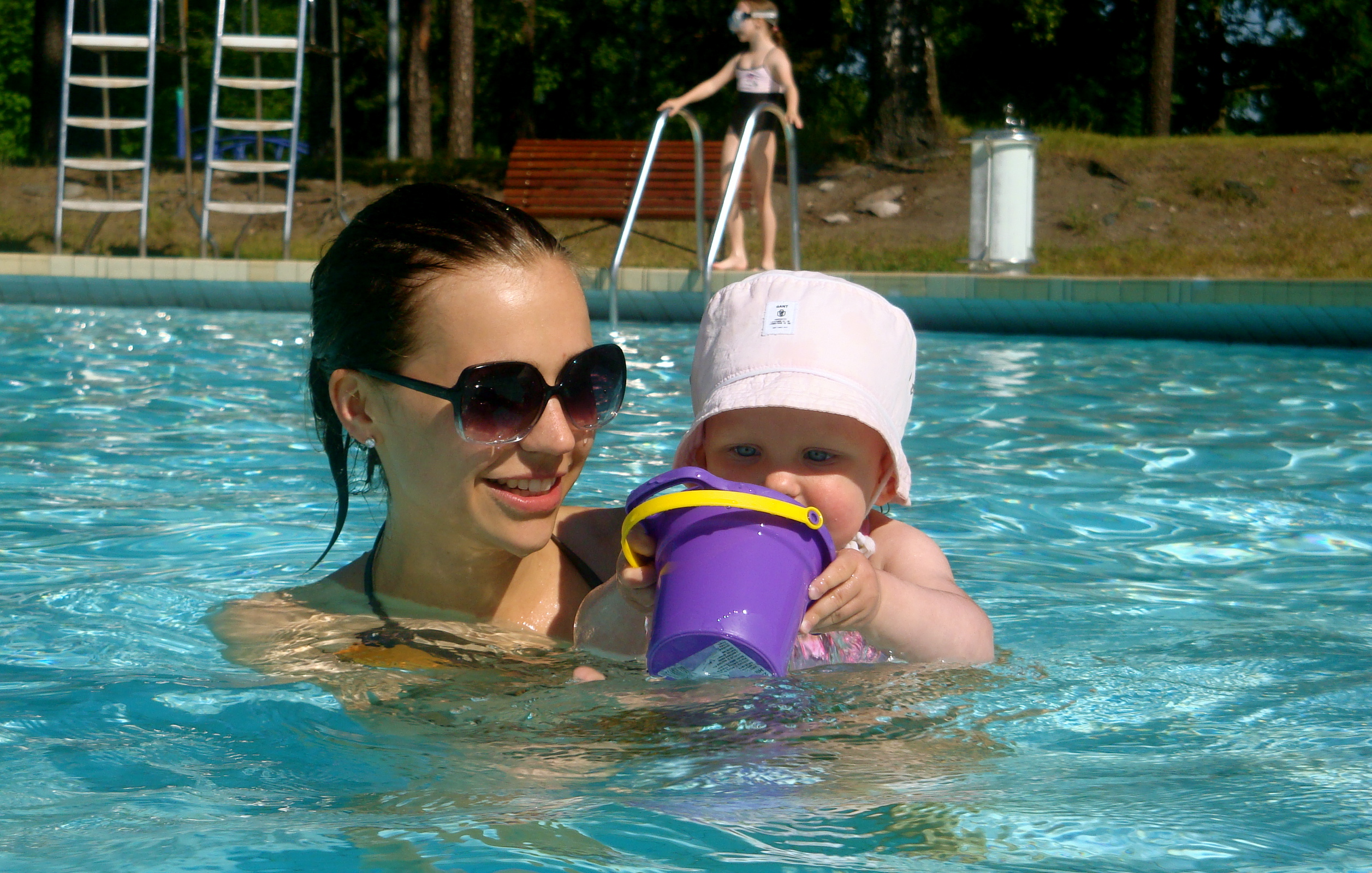 Freja nöjde sig med att doppa fötterna i vattnet. Teresa däremot stortrivdes i vattnet.