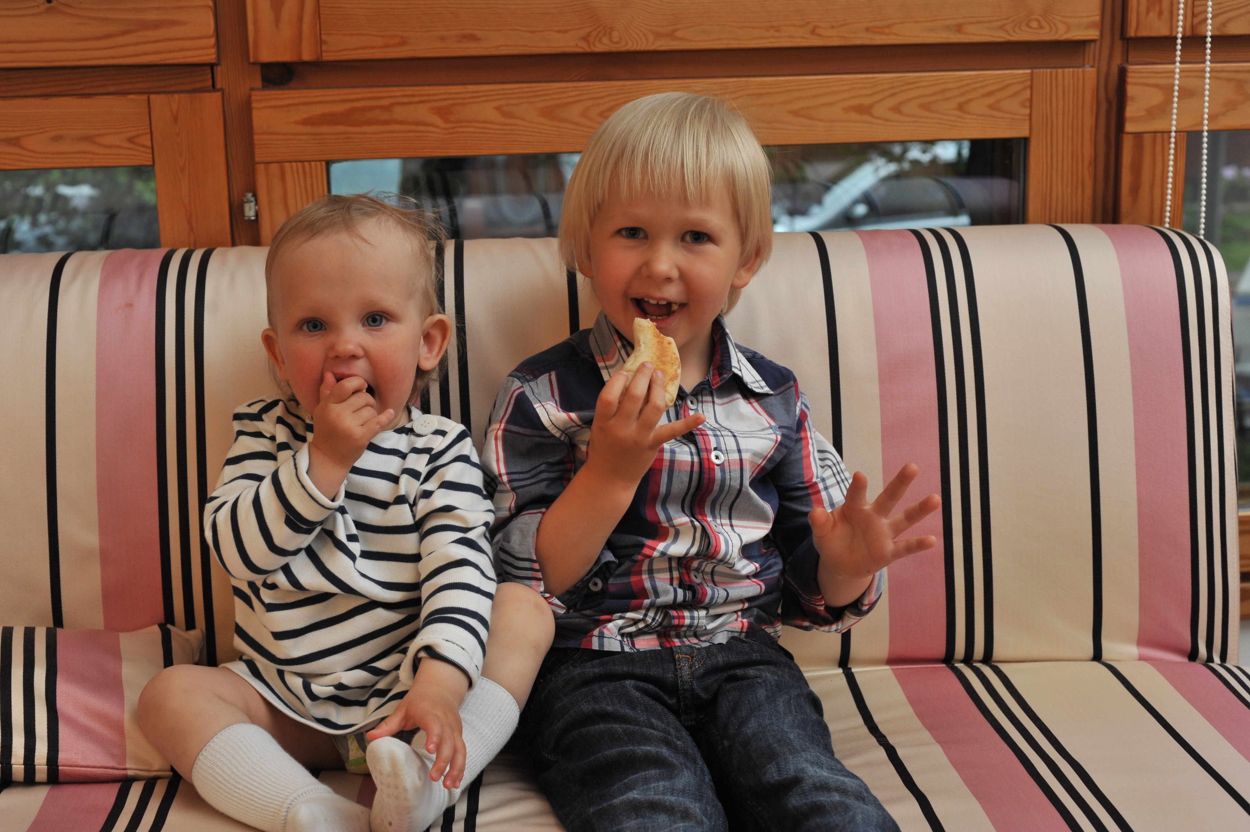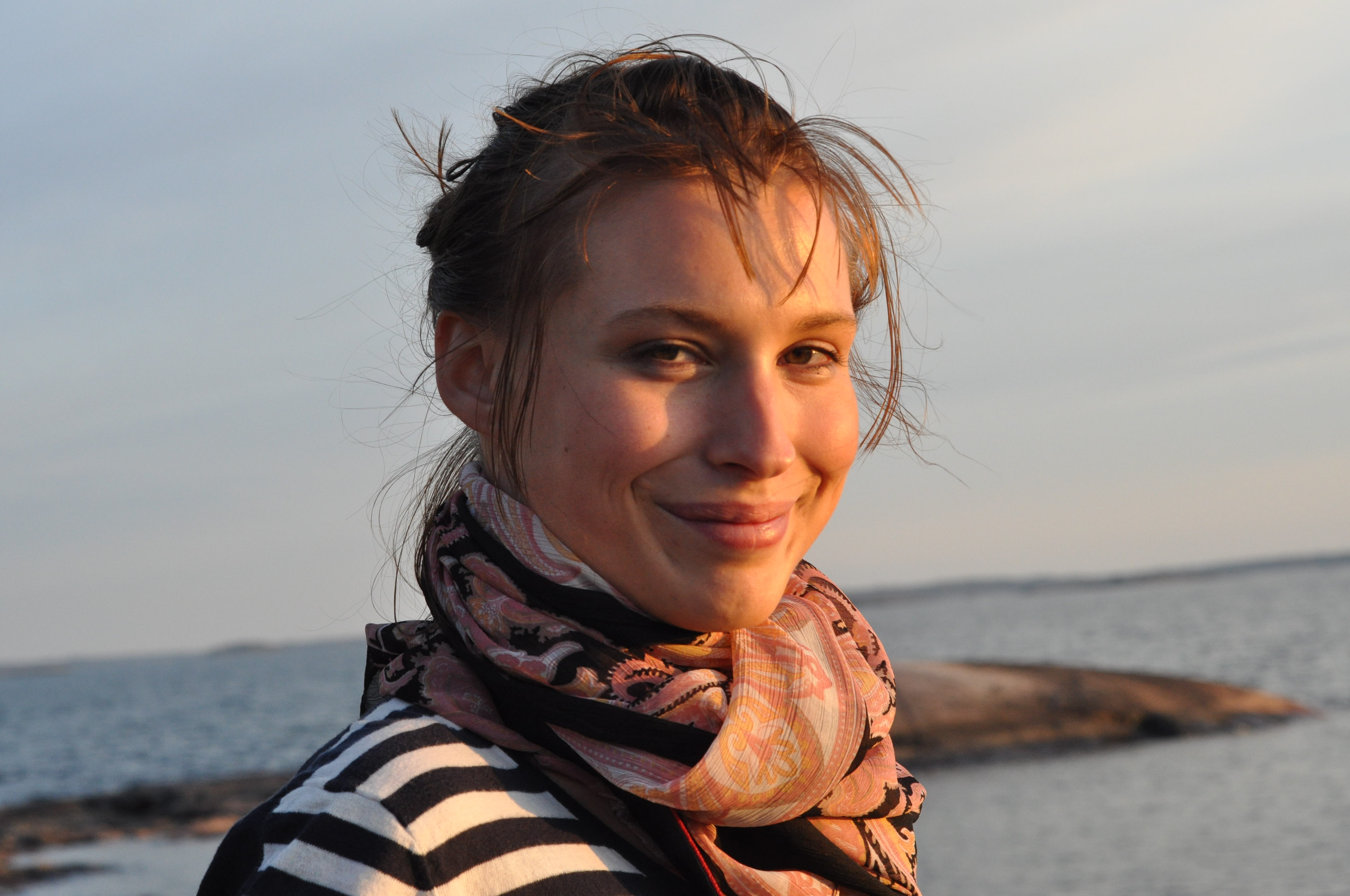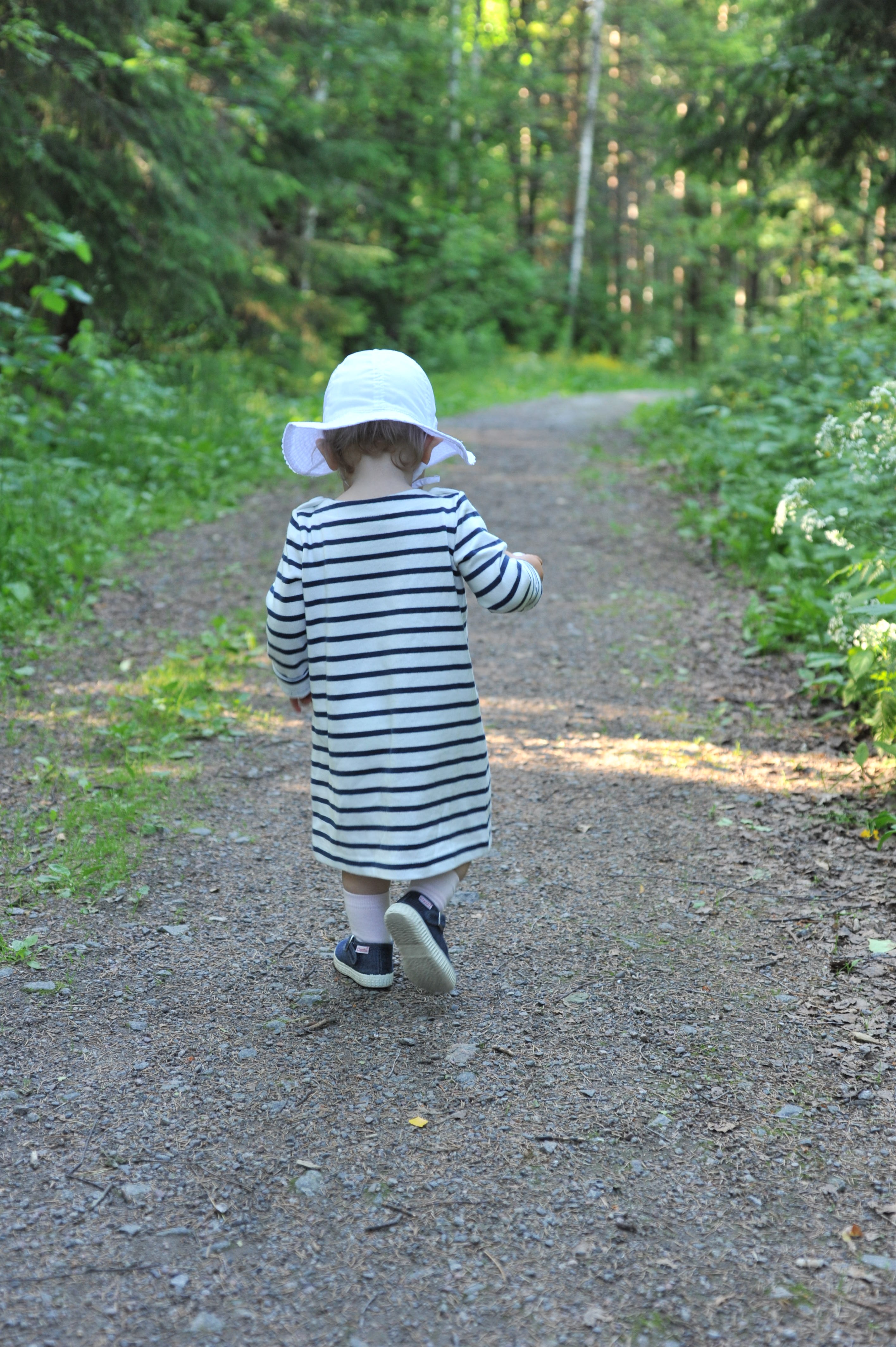 Freja nöjde sig med att doppa fötterna i vattnet. Teresa däremot stortrivdes i vattnet.