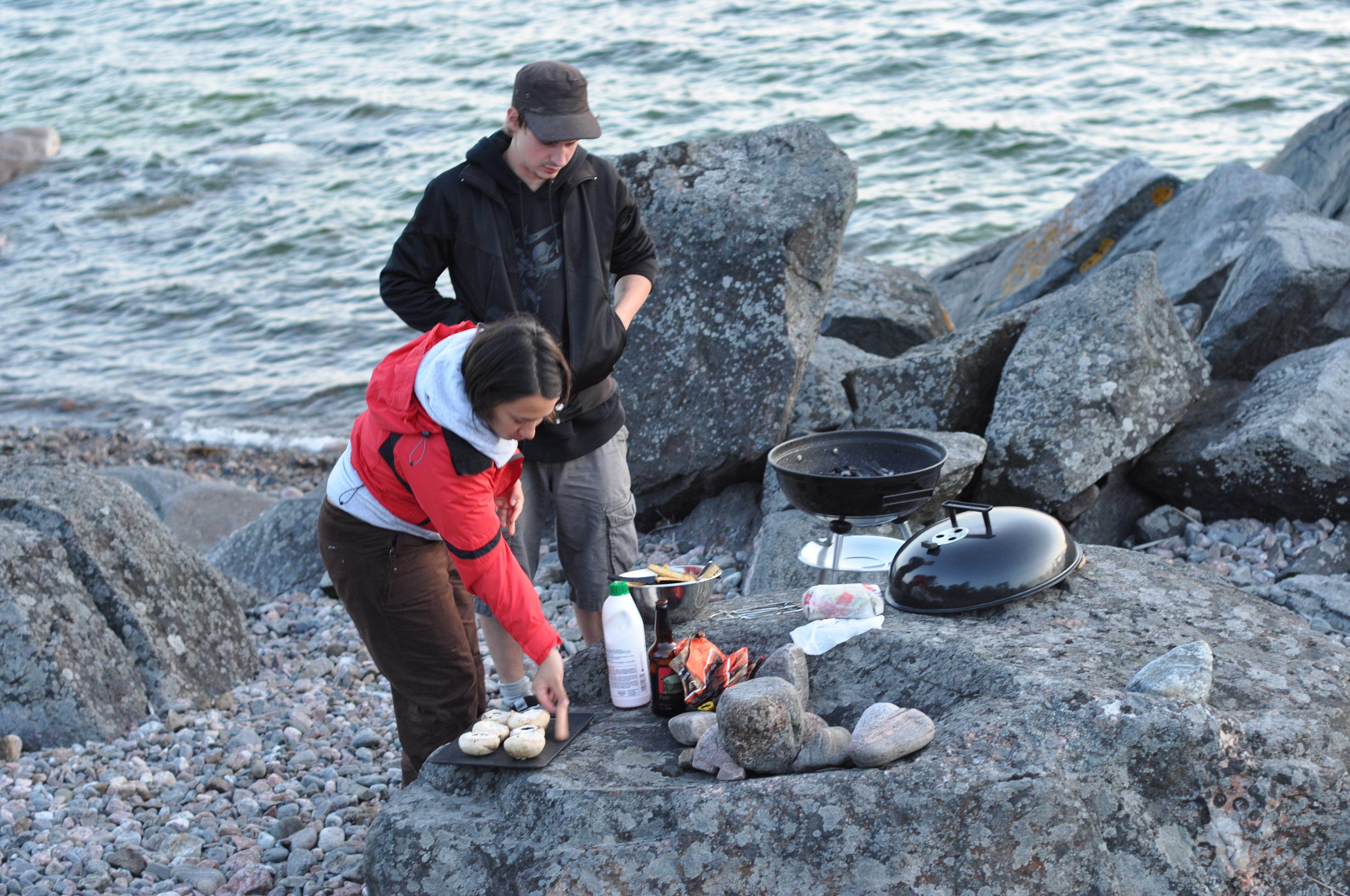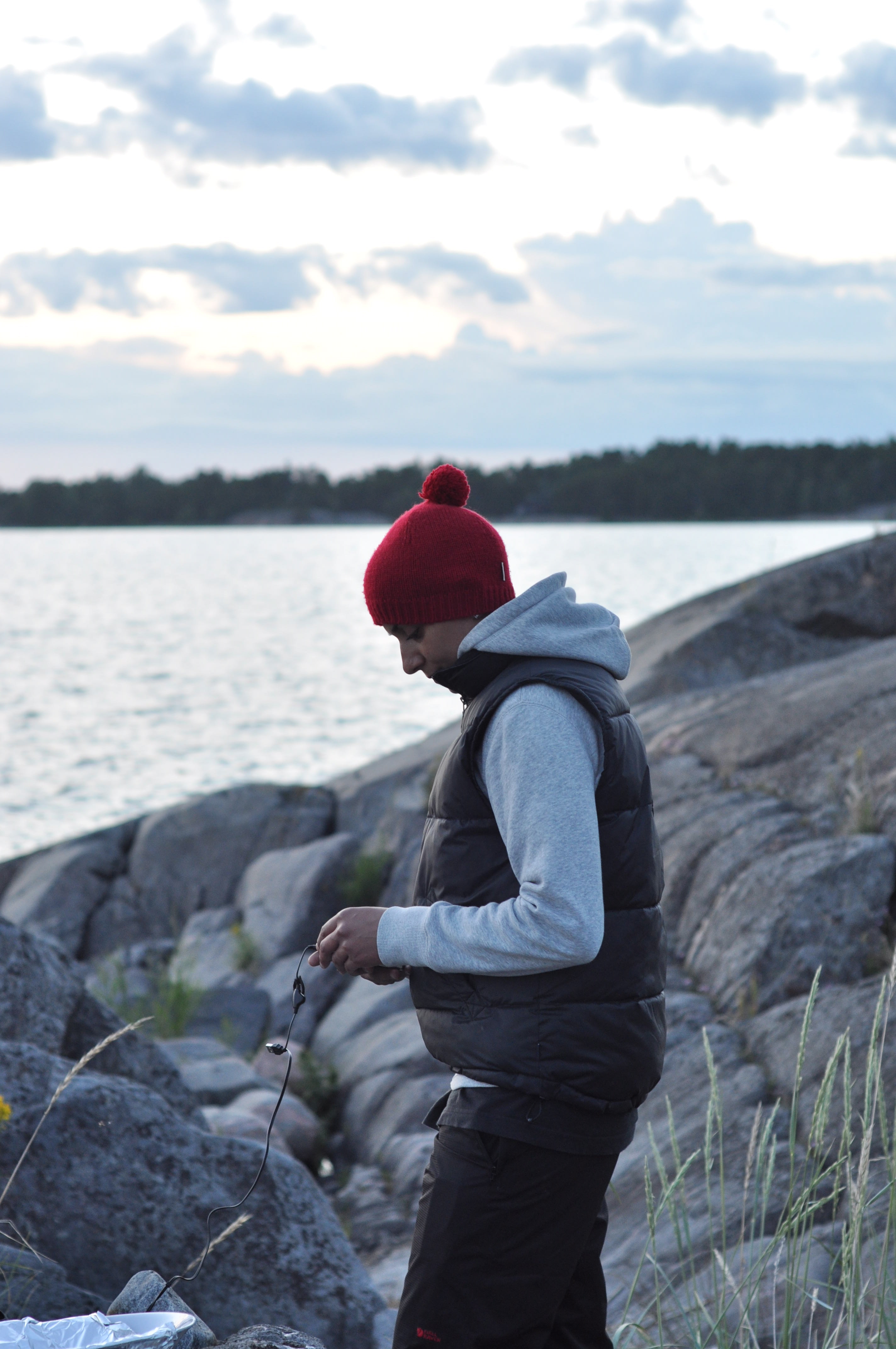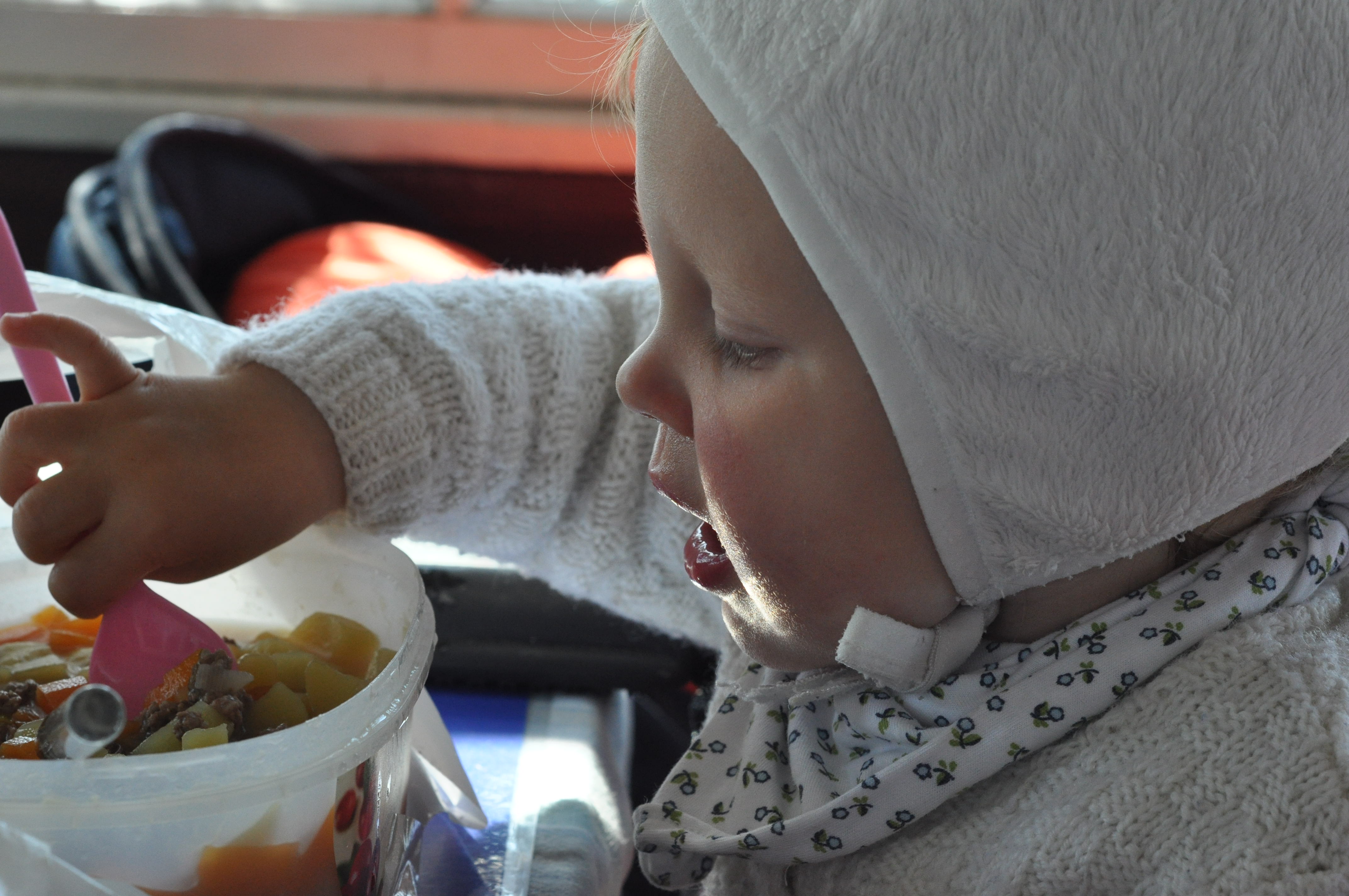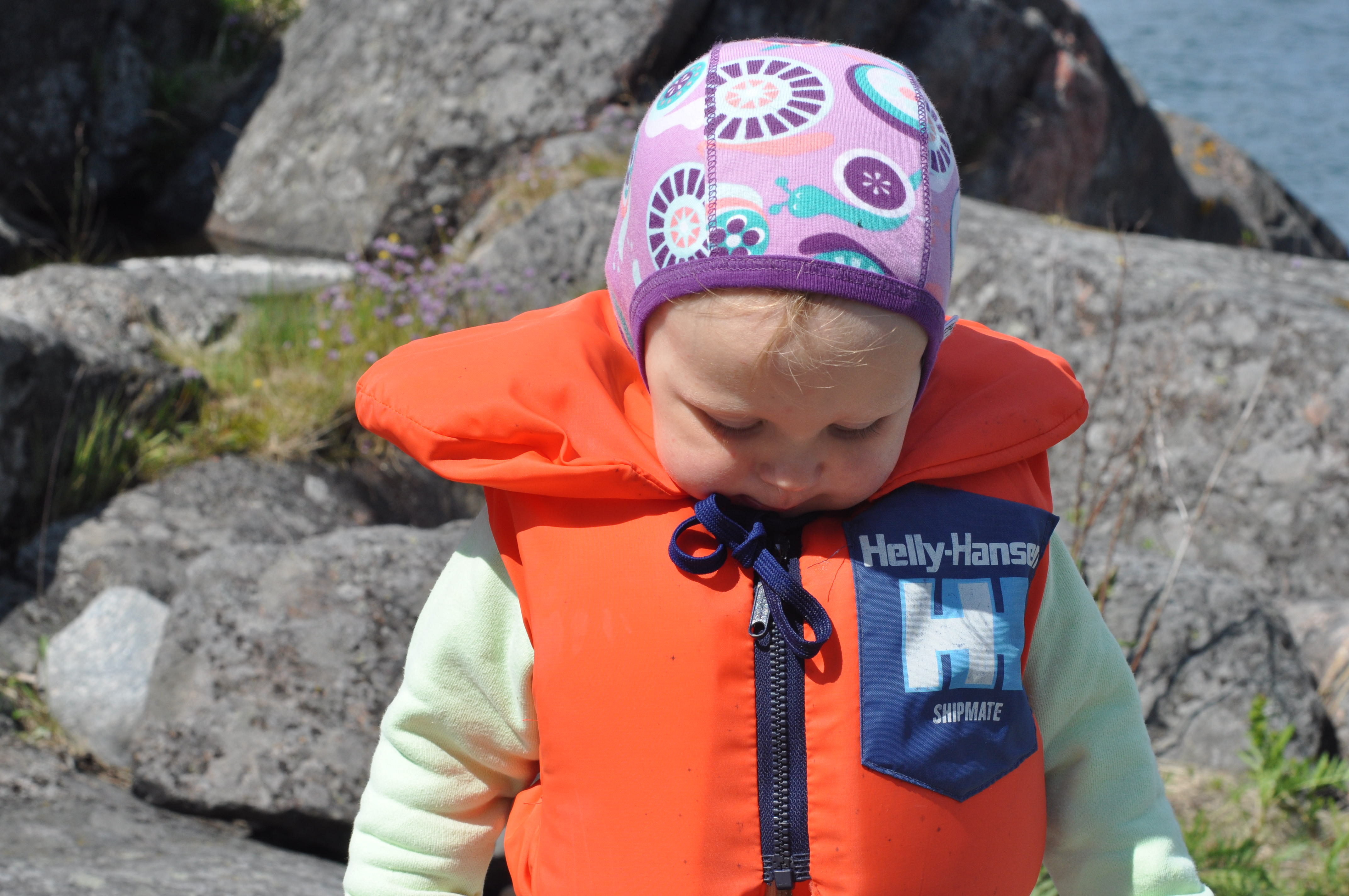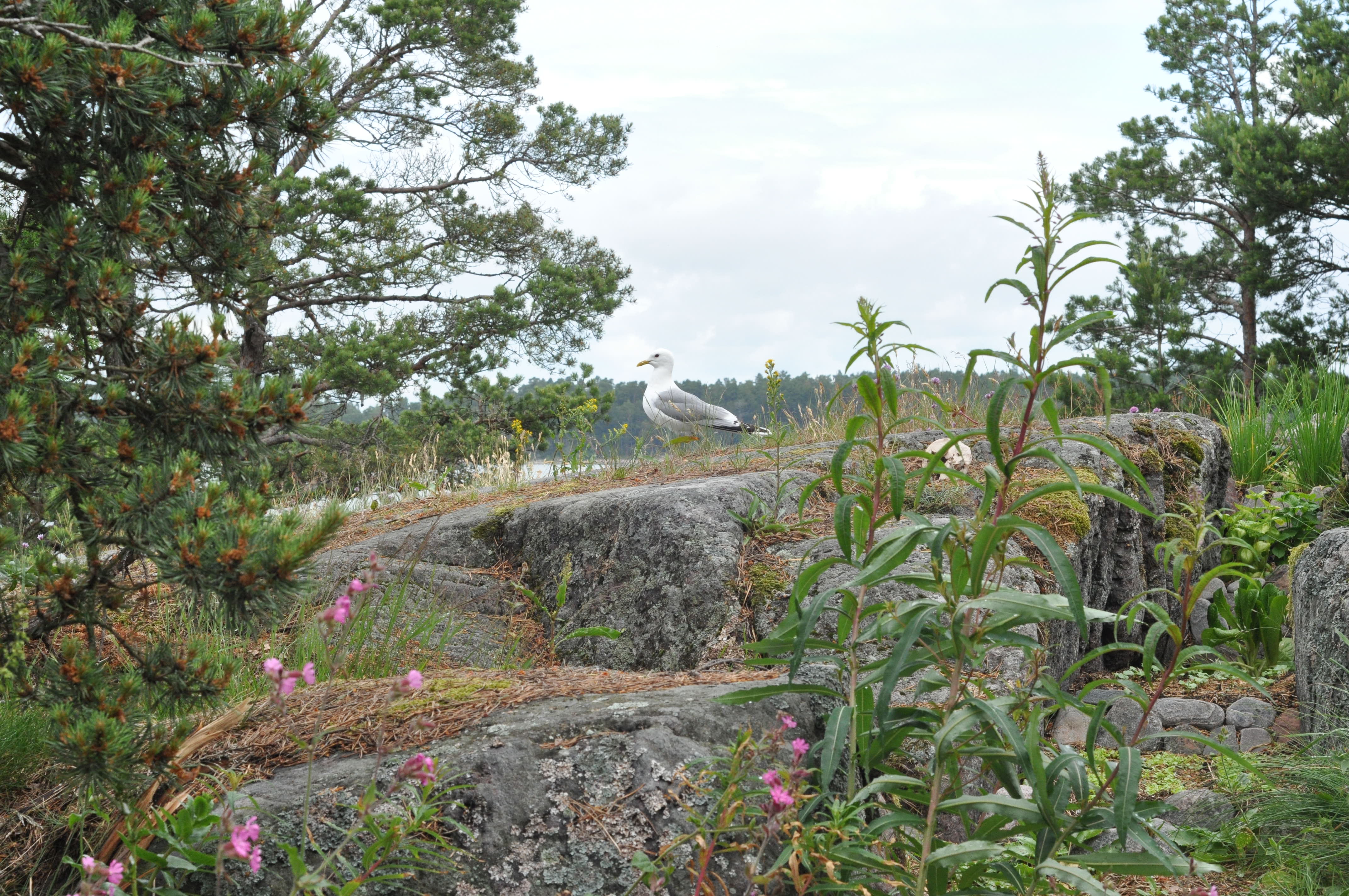 Freja utforskade stranden och hittade den finaste stenen. Måsen hälsade oss välkomna.