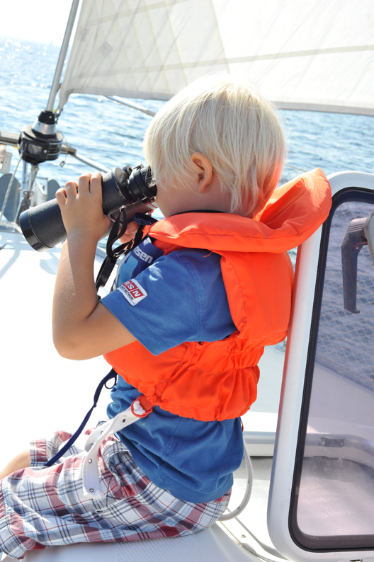 På lördagen gav vi oss ut på sommarens, kanske, sista seglats. Vi var inte ensamma på havet. Tur att Emil höll utkik i fören.