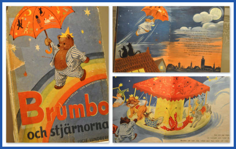 Idag har jag läst för Freja om Brumbo björnen som lånar John Blunds pirra-purra-paraply och flyger ut i rymden. Det här är en saga som jag kommer ihåg från när jag var liten. Jätte fina illustrationer och en ljuvlig berättelse om hur Brumbo färdas omkring i rymden i en härlig fantasi värld. Där möter han Åskgubben, Saturnus som vaktar vintergatan, Marsbjörnarna som tar honom till fånga och många andra roliga figurer.
