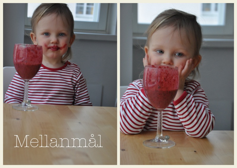 Och såhär kan det se ut när Freja sörplar i sig sitt mellanmål.