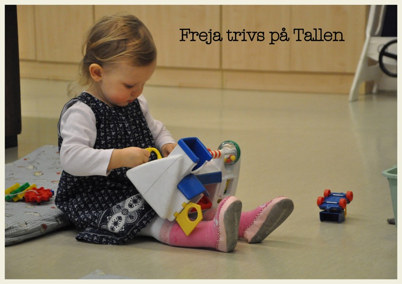 Vi har börjat med en ny rutin och besöker Folkhälsans öppna daghem på Drumsö en gång i veckan. Freja älskar sångstunden och att leka med de andra barnen där.