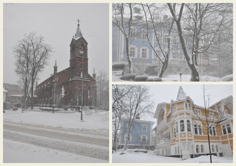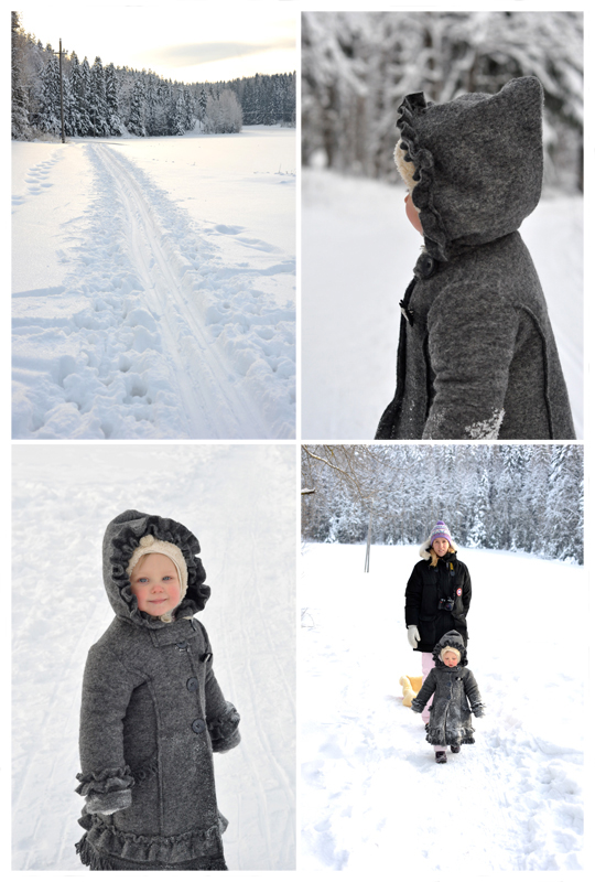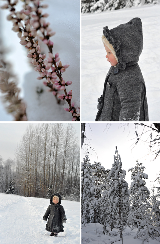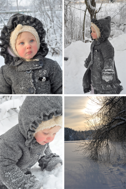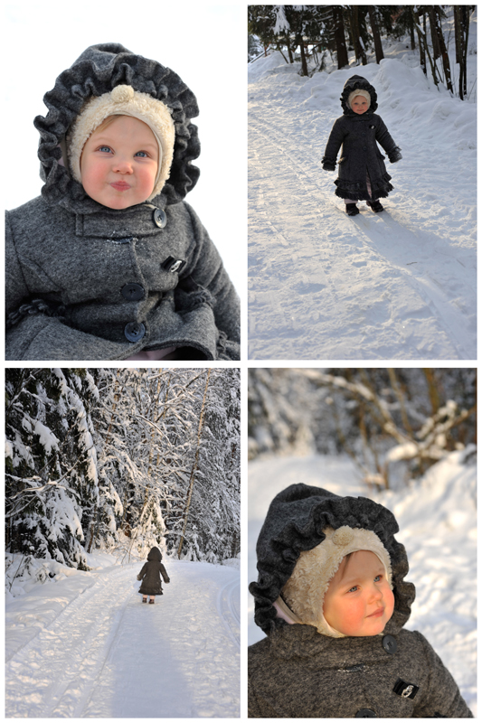 Under tiden Freja sover, drar jag på vagnen genom snödrivorna på trottoarerna. Försöker knäppa några bilder och kan konstatera att jag föredrar att fotografera i solsken.