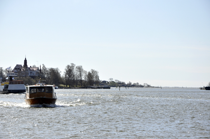 Båten vi åkte med anländer till kajen vid Salutorget.