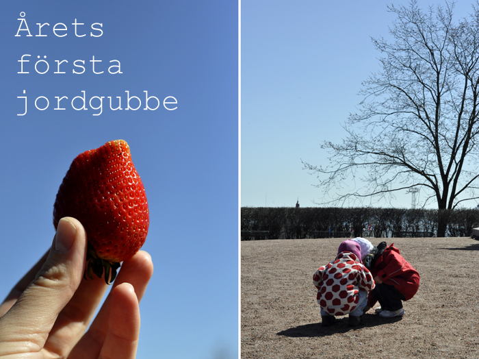 På torget smakade flickorna på jordgubbar både med lov och utan. 😉