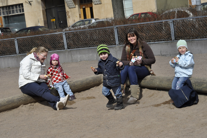 På eftermiddagen fick vi sällskap av Karolina och Mauno som hade varit på Kanarieöarna, de hade med sig fina souvenirer. Vi hade picknick i Observatorieparken, som efter en stund flyttades till närmaste sandlåda. Dagen avslutades vid Kaserntorget där även polishästarna trivdes. En fin dag i trevligt sällskap!