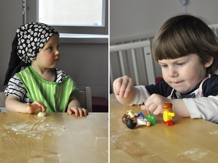 På valborgsmässoafton började vi firandet med att baka munkar. Legogubbarna var också med och mellan varven delades det ut pussar och kramar. Sen blev det mumsigt munkkalas i parken.