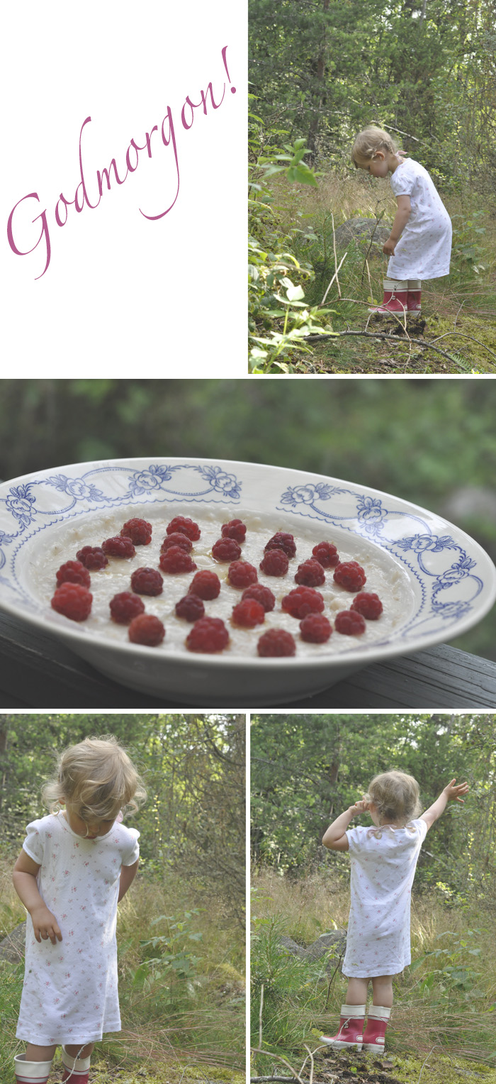 ♪♬ Vad får vi till morgonmål? ♬♪ 3 augusti, 2012Okategoriserademalinofreja Gröt med hallon och socker på, det får vi till morgonmål! Nästan varje morgon har vi gått ut i nattskjorta, för att plocka hallon bakom stugan. Någonting vi kommer att sakna när vi är tillbaka i stan. Dela detta: Klicka för att dela till Pinterest (Öppnas i ett nytt fönster) Pinterest Klicka för att dela på Facebook (Öppnas i ett nytt fönster) Facebook Gilla Laddar in … Relaterade