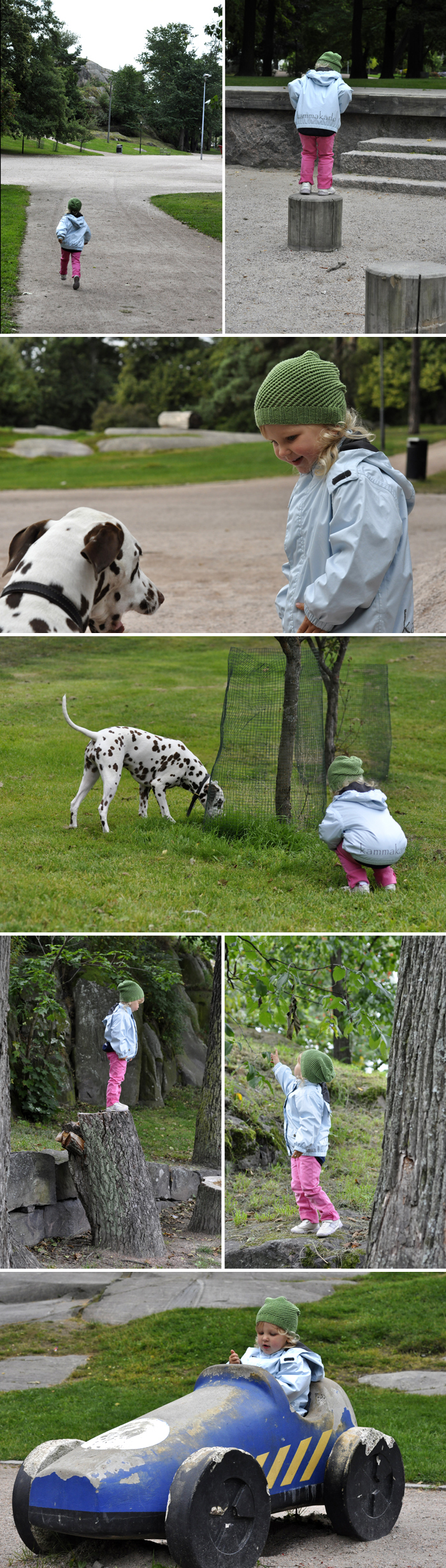 Freja tycker om att leka i Brunnsparken där hon får springa fritt omkring. Här finns också en av stans finaste lekparker, den gamla drakparken, som vi kallar den.