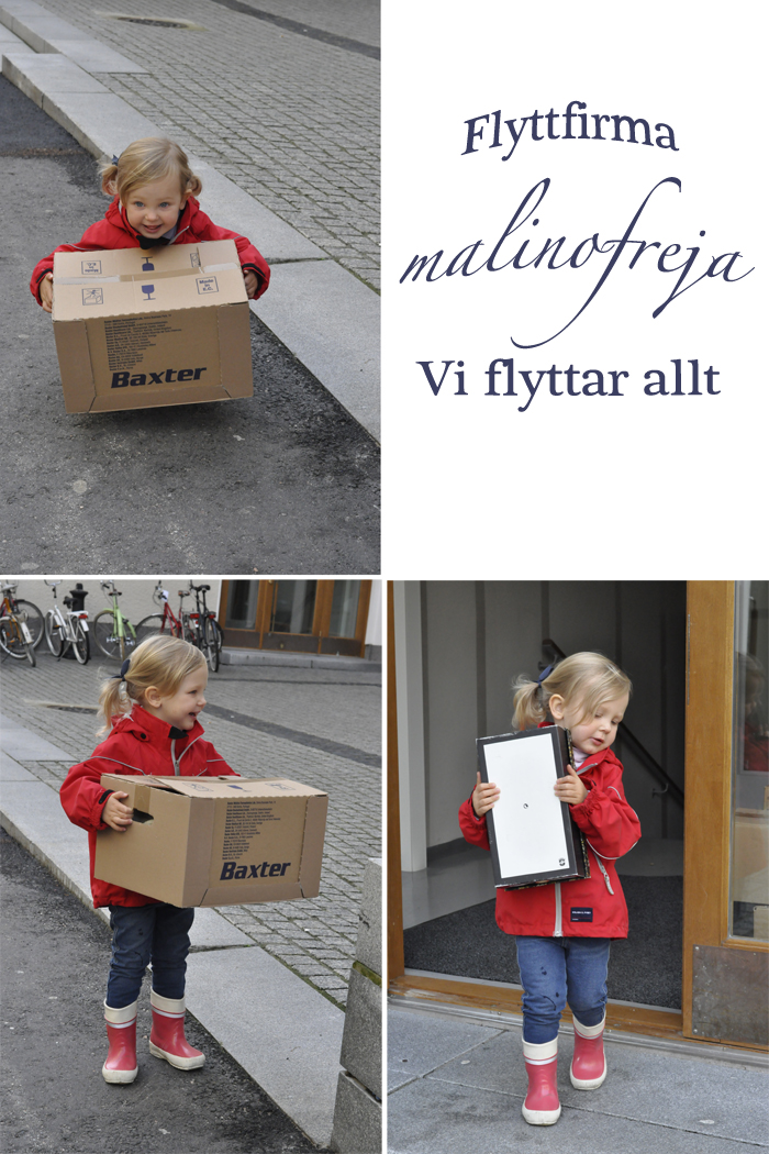 Det känns nog lite vemodigt att flytta, men har man en såhär glad hjälpreda blir man själv också mycket gladare. I skrivandets stund är det lådor överallt och jag undrar hur mycket saker det kan rymmas i en liten etta. Idag skall vi sova sista natten här i gamla hemmet och kanske hinner vi med lite bastubad ännu i kväll.