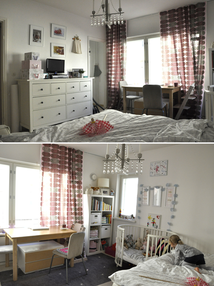 Nu har vi sovit två nätter i vår nya lägenhet. En stor del av flyttlådorna är uppackade, men det tar nog en tid innan allt hittar sin plats. Lite nya möbler skall vi också få. Vi har en underhyresgäst, Frejas moster Caroline. Alla trivs vi jätte bra. I det stora rummet, där jag och Freja sover, finns en kakelugn designad av självaste Eliel Saarinen. Vid den kan vi värma oss under kalla vinterkvällar och kanske grilla korv 🙂