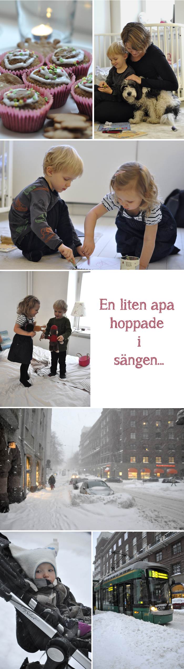 Igår hade vi Anni och barnen på besök. Det var jätte roligt att de kom trots vädret, som nog var ganska extremt. Viggo och Freja hade så roliga lekar igen och trivdes i varandras sällskap. Freja stod på spårvagnshållplatsen och grät då vi vinkade hejdå.