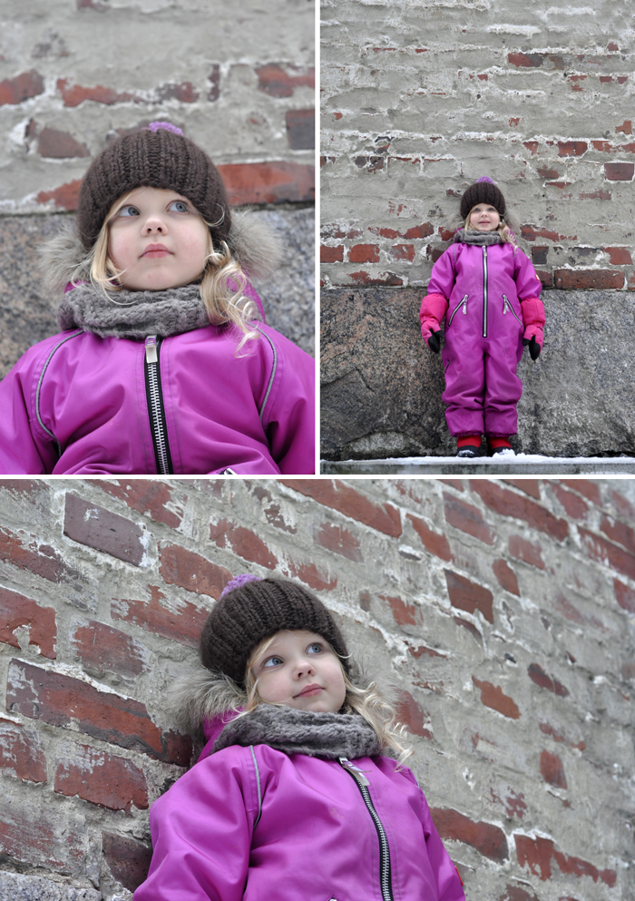 Det var inte precis  i vinterhalare och yllemössa som jag tänkt att modellen skulle vara klädd. Men jag kunde inte låta bli att testa hur väggen skulle fungera som bakgrund. Och visst är den perfekt.