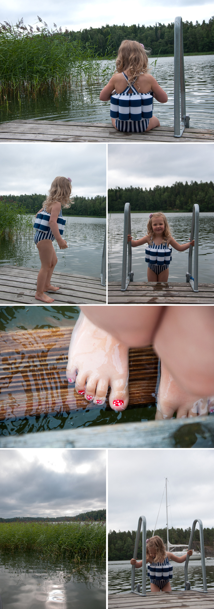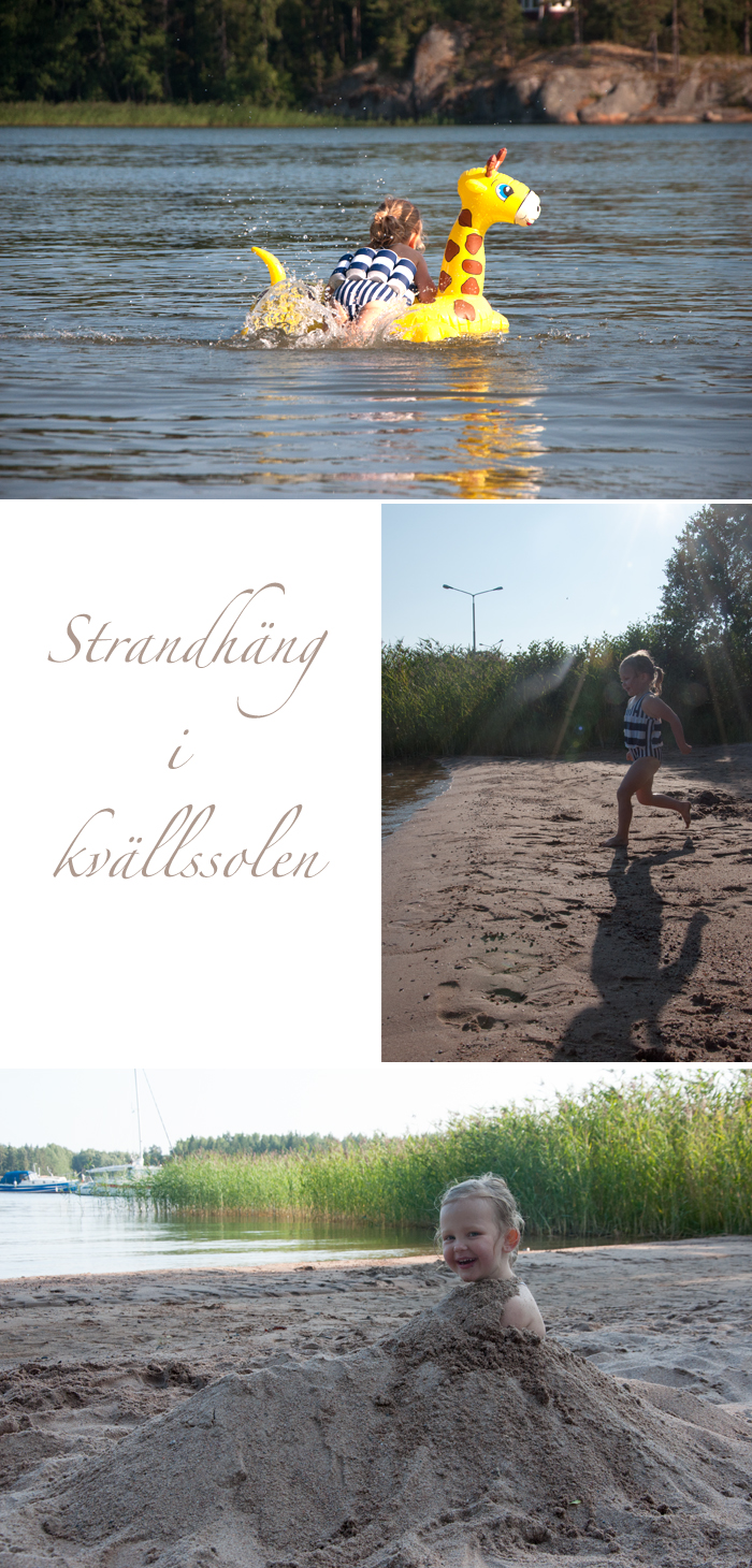 Efter en liten eftermiddagslur på stugan promenerade vi till stranden. Jag blev också tvungen att ta ett dopp då giraffen simmade iväg och Freja stod gråtande på stranden.