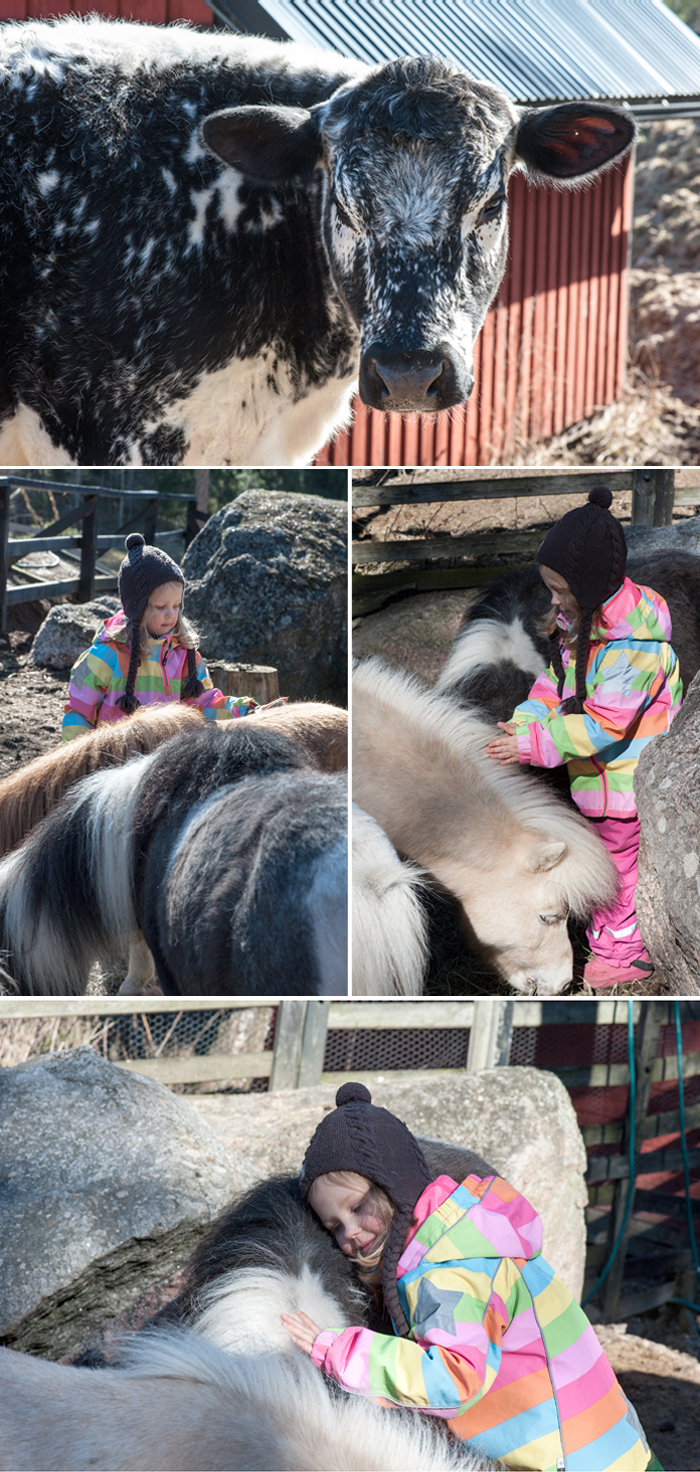 Falabella hästarna, vilka Freja trodde vara små föl, tyckte hon allra mest om. Jag tycker att den där visslande alpackan ser rolig ut. Sällskap hade Freja av mommo som också tagit alla bilderna.